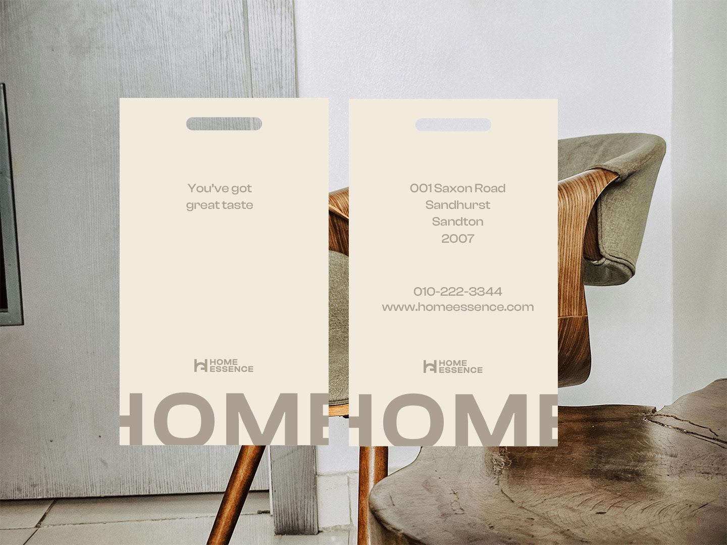 Logo: A minimal sans-serif font that ties in with the brand name, paired with an icon that represents the entrance to house.