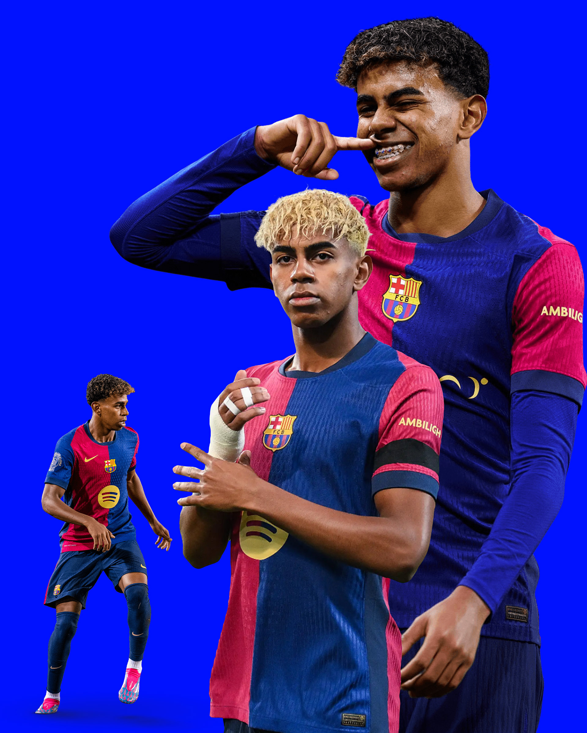 High-impact and enegetic social media visual of FC Barcelona wonderkid, Lamine Yamal. Focus placed on shape and colour for online appeal.